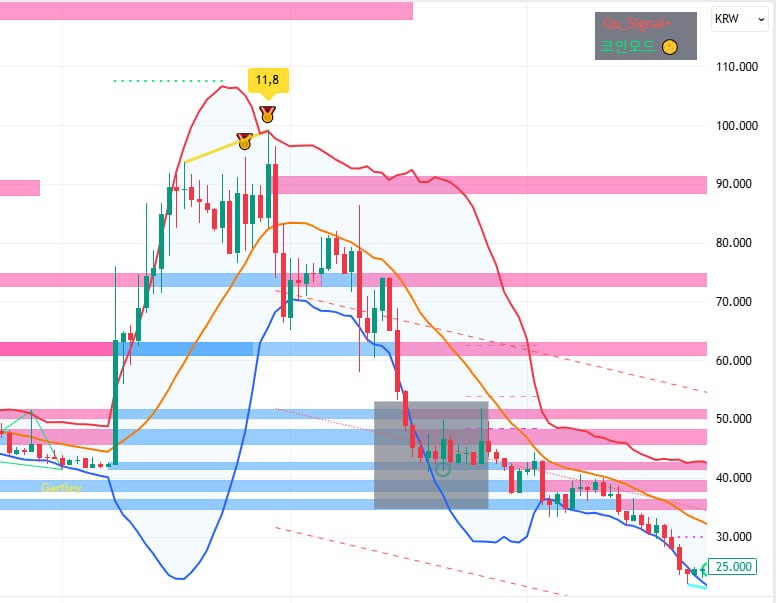 AI가 수십 개 이상의 지표들을 감시, 분석하여 실시간으로 수집·모니터링하고, 추세 전환이 예측되는 타점에추세 전환 가능성이 높은 핵심 구간을 정밀하게 도출해 매달 신호를 실시간 로켓 알림 발송